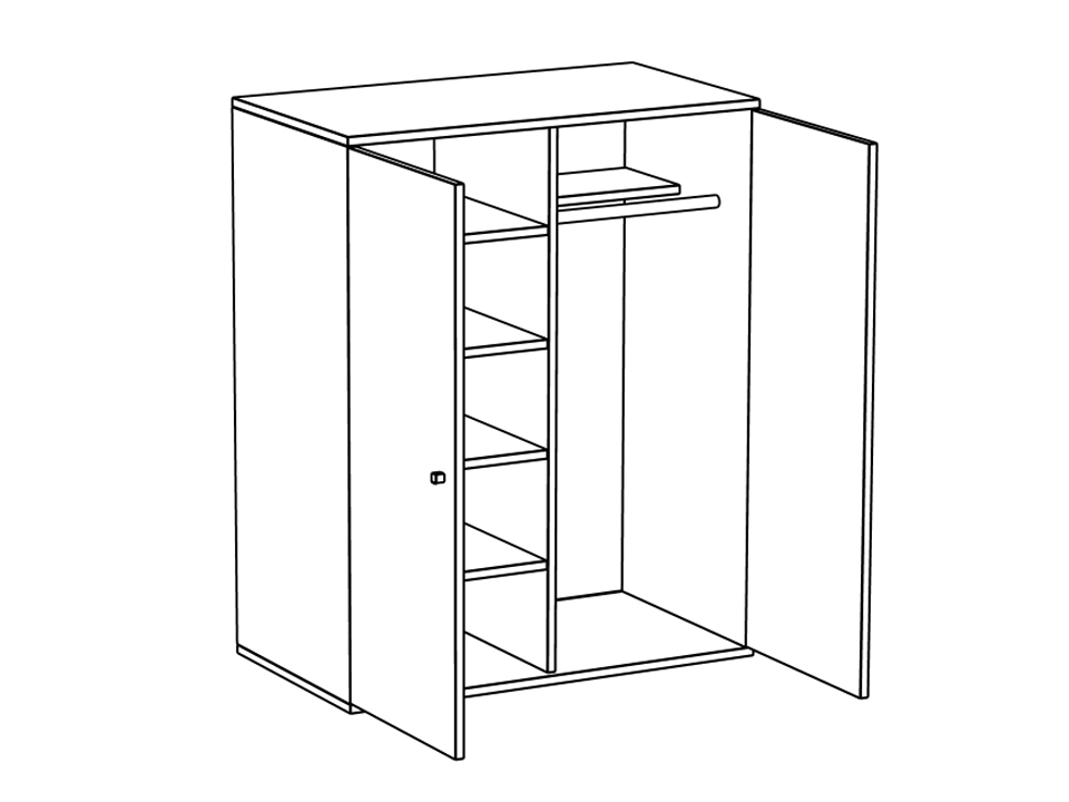 Низкий шкаф устанавливается в нижнем ярусе кровати-чердака. Шкаф имеет два отделения: Одно отделение с полками и штангой для одежды. Второе - с полками.