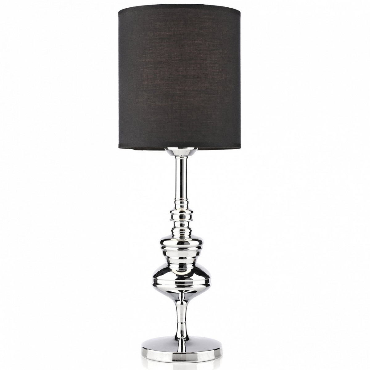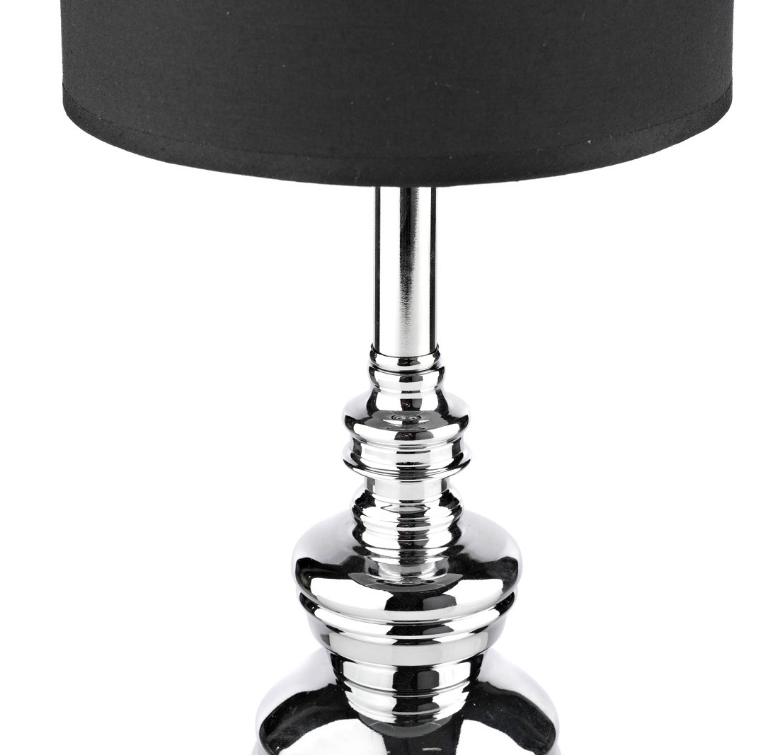 Тканевый абажур, основание из хромированного металла.